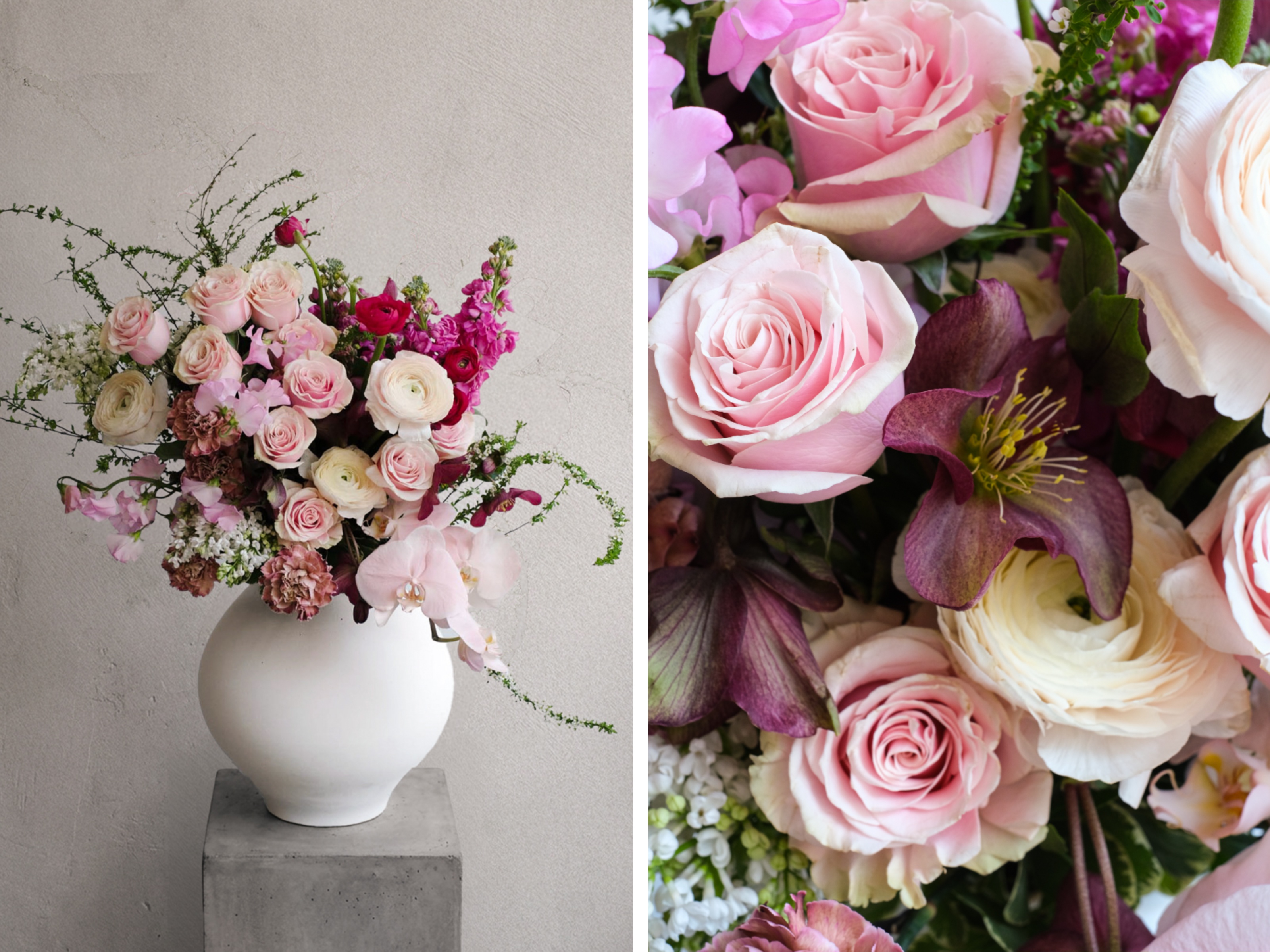 J’adore Dior in shades of pink, designed for true romantics and Ruby Woo, a deeply seductive arrangement in deep reds. J’adore Dior pays homage to Dior’s iconic floral parfum signifying elegance, beauty and sophistication. Antiquated pink Mondial roses are harmoniously arranged with our Valentine's hero flower, Ranunculus, both in hot and blush pink. Sugar pink Orchids and delicate Sweet Peas finish the assemble. Designed for true romantics.
