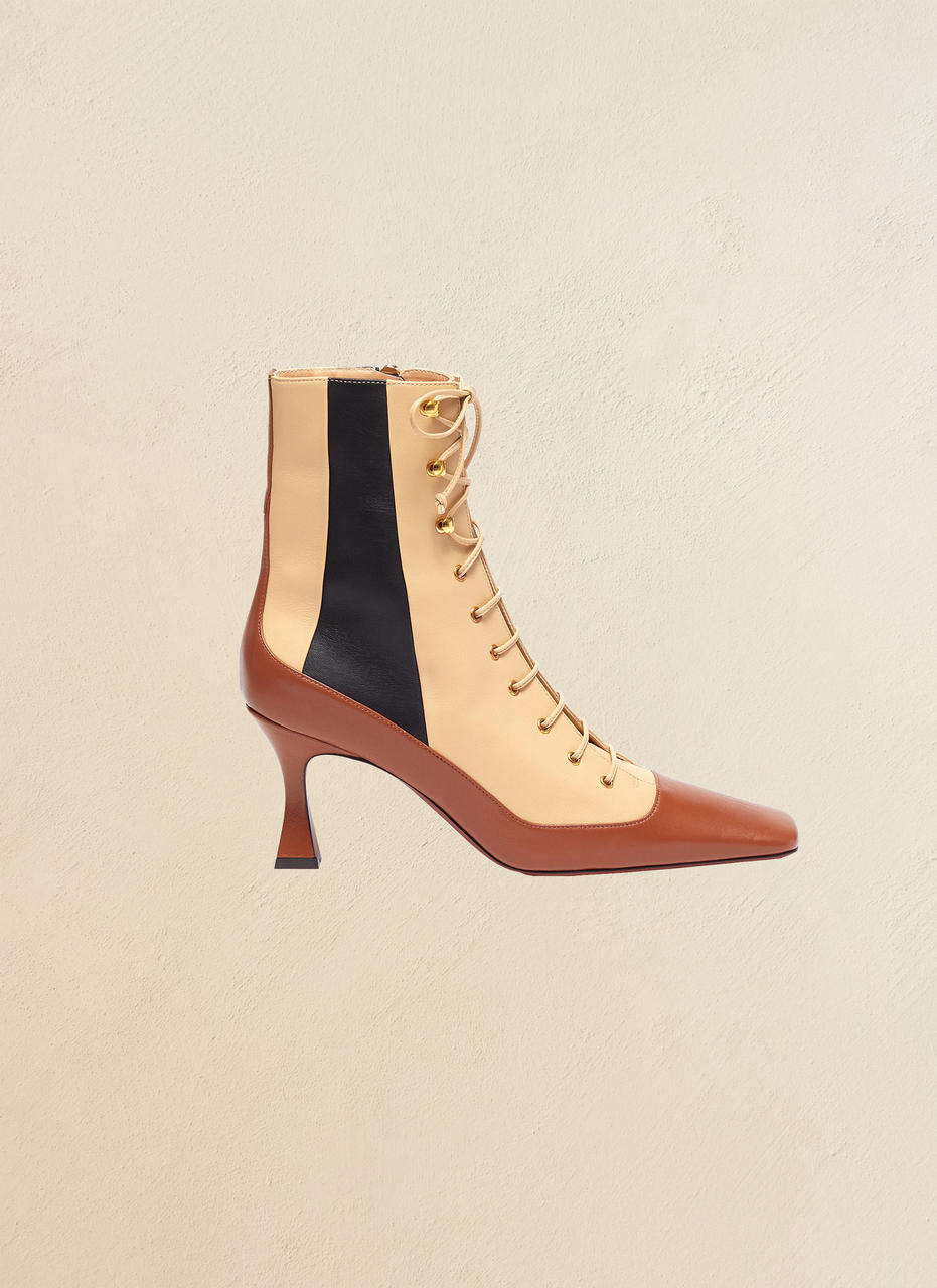 Ticking the colour-blocking, square-toe and lace-up bootie trends all at once, MANU Atelier delivers on exactly the kind of footwear we want to be wearing right now. The brand uses the oldest handcraftsman and leather goods manufacturer in Istanbul, meaning you know the quality is beyond, too.