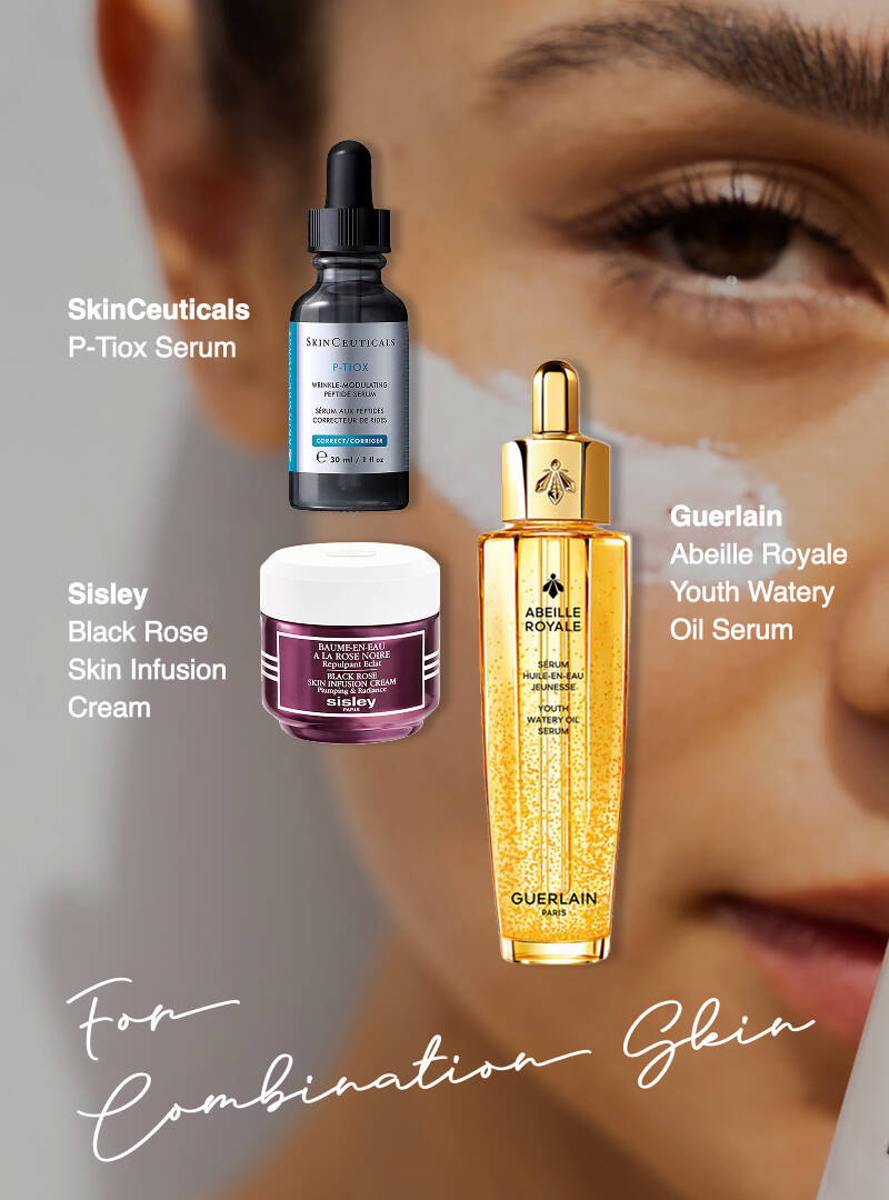 Finding a great moisturiser can be a challenge, but things tend to get even stickier if you have combination skin. Nailing the right moisturiser is one of the toughest parts of owning combination skin. You need something hydrating yet nongreasy, lightweight but effective. Enter Sisley’s Black Rose Skin Infusion Cream. For serums, combination skin requires extra hydration. SkinCeuticals’s P-Tiox Serum is ideal—lightweight and fast-absorbing, it won’t weigh down oily areas.