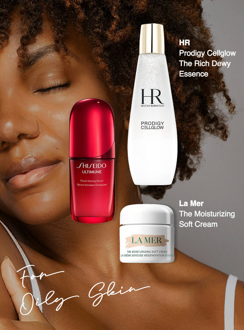 When you have oily skin, finding products that work together to keep the glow alive but the unwanted shine at bay can be mission impossible. Keep skin hydrated with a lightweight moisturiser that mattifies and leaves a silky finish, enrich with La Mer’s Miracle Broth™ for deep plumping. Moreover, alcohol-free essences like Helena Rubinstein’s CELLGLOW Essence can help oily skin benefit from hydration in the search for balance underneath all that excess sebum.