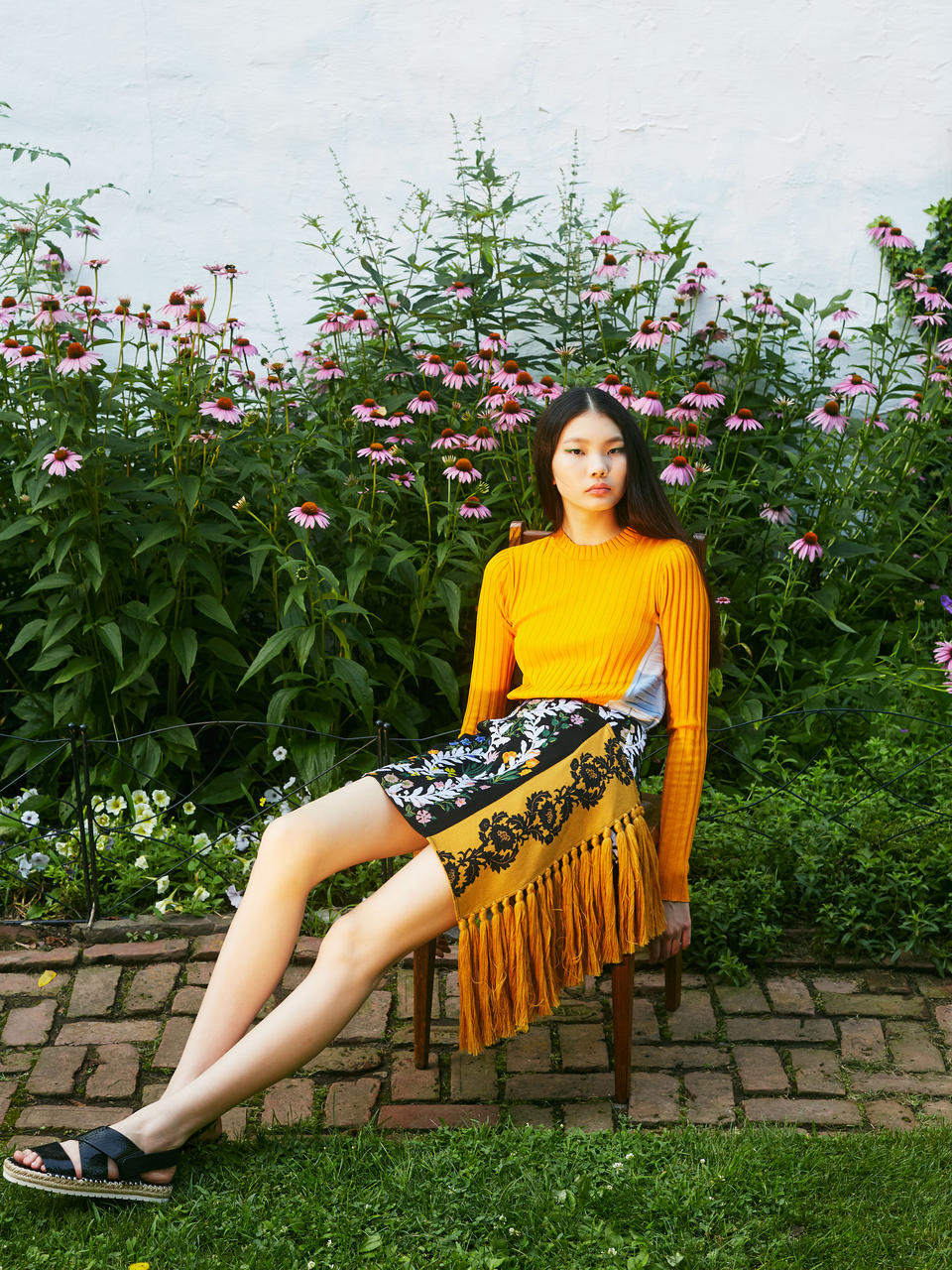 Top Rosetta Getty, skirt Oscar de la Renta, sandals Vince
