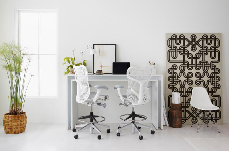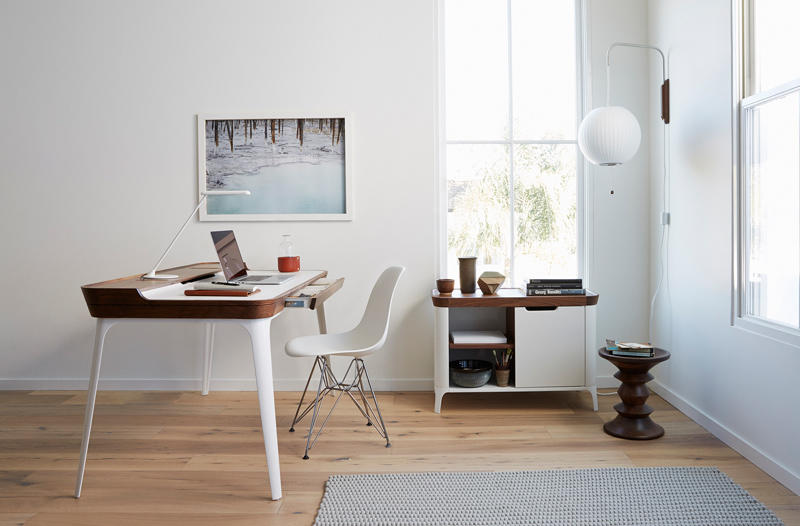 A great office starts with a great chair, and Herman Miller has set the standard for decades, working with legends such as Charles and Ray Eames and Isamu Noguchi as well as more modern names like Naoto Fukasawa. If you’re after a chair that means business and still looks the goods, the uber-modern, ergonomic Sayl Chair by Yves Béhar is a strong choice. If you’d like something that blends living and working a bit more, the iconic series of Eames moulded chairs might be a better fit (the rocking chair is a great choice for inspired evenings).