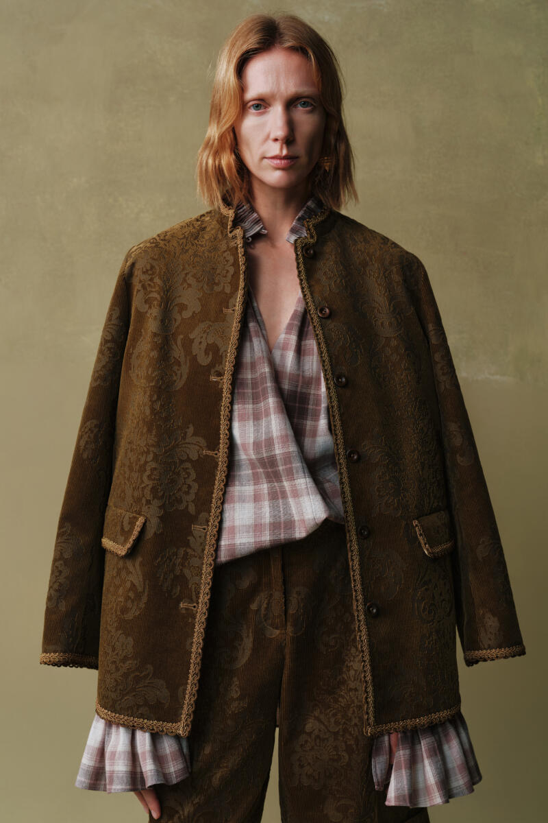 The creative inspiration behind INTO THE EAST is rooted in the concept of “patina,” often referenced in the antique collecting world. This term reflects the warmth and luster that objects acquire over time, guiding our belief that beauty is dynamic, deepening with the years. INTO THE EAST aims to embody timeless elegance, interpreting fashion through a refined, understated lens, with each design showcasing sharp tailoring, rich textures, and sophisticated tones.