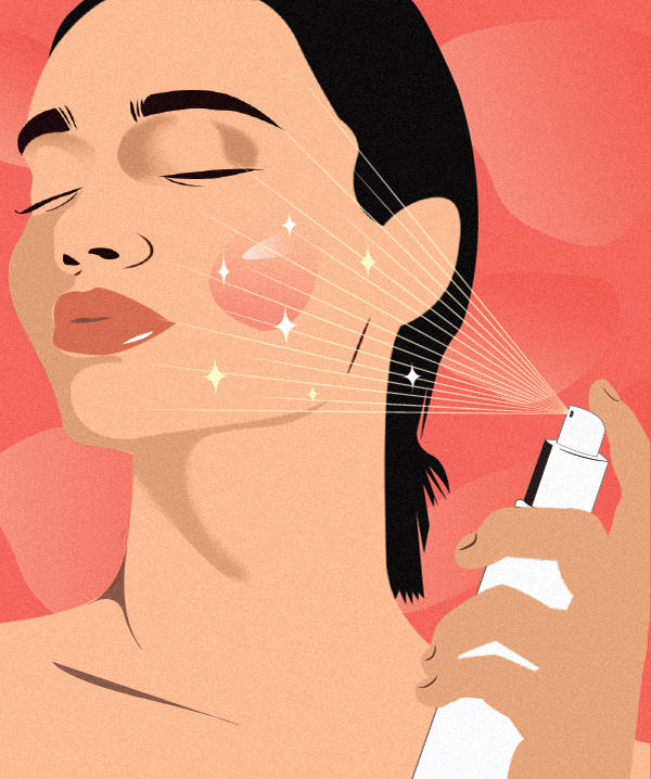 Hydrating mists, on the other hand, are filled with moisture-binding ingredients that ensure the mist particles hug the face and infuse your pores with the good stuff. In fact, using a hydrating mist before you apply your serum and moisturiser can actually help your products penetrate deep into the dermis. It doesn’t hurt to mist in between your make-up steps, either, before and after primer, foundation and powder, helping the layers to blend into each other more seamlessly. If you have oily skin, misting regularly helps your skin stay hydrated and controls compensatory sebum production.