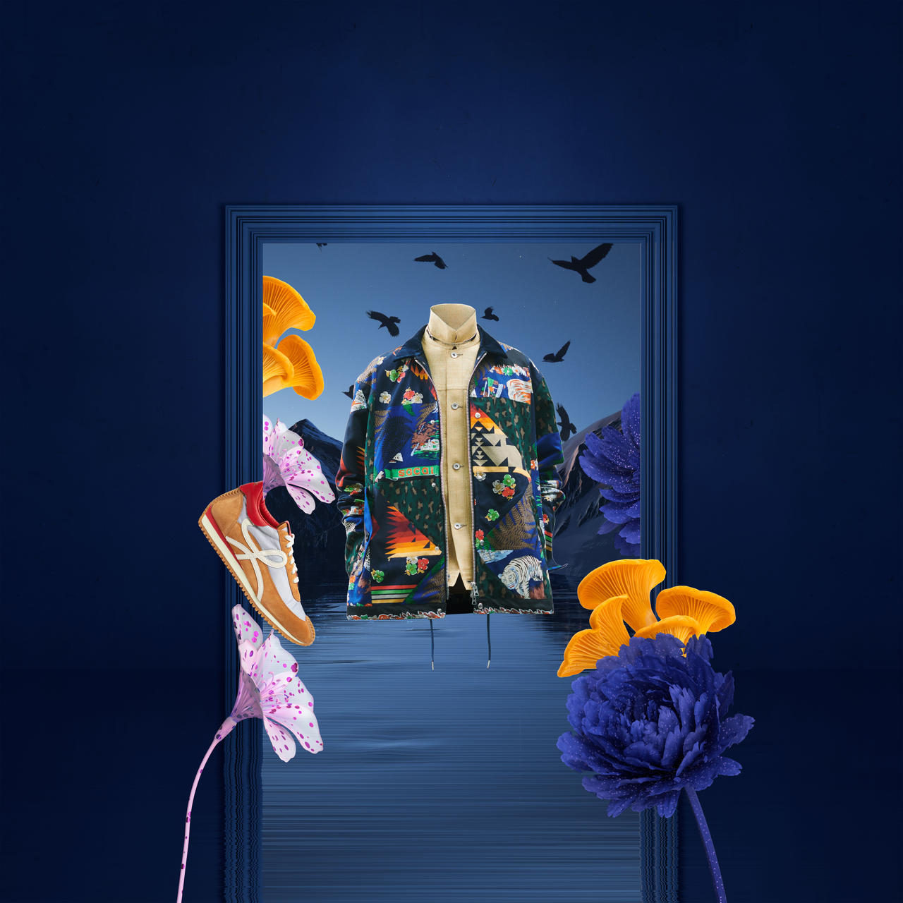 + LOEWE FLOW RUNNER' Logo Sneakers Shop Now + SACAI Archive Print Patchwork Zip Up Jacket Shop Now Moonlight Electric This season's collections are capturing the magic of when day turns to night, revealing a deep and moody glamour through unexpected pairings.