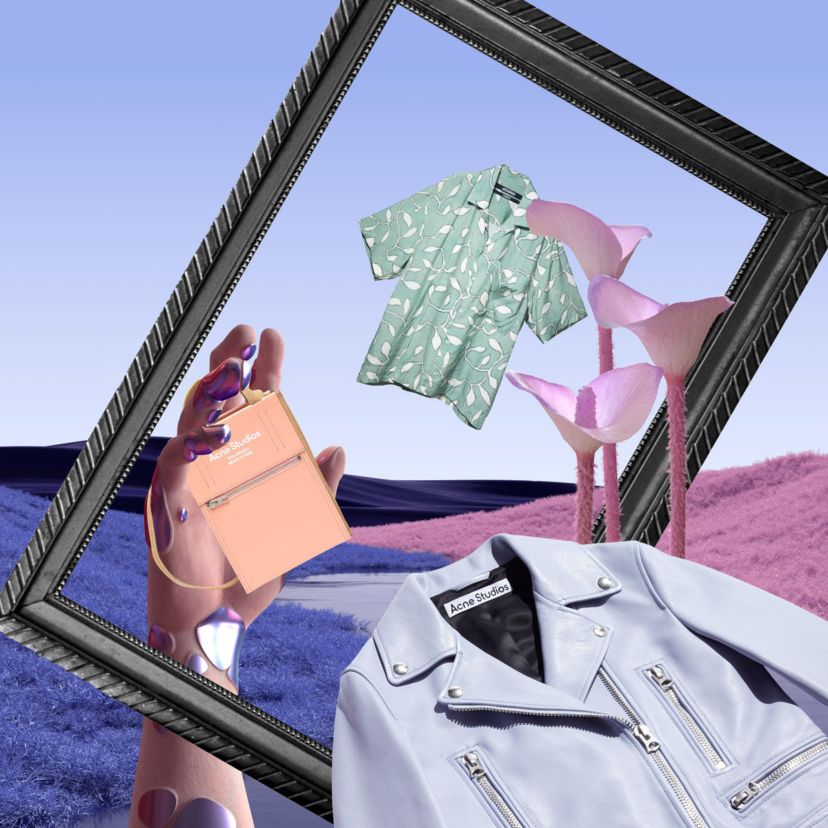 + JACQUEMUS 'La chemise Jean' All-over Leaf Graphic Print Bowling Shirt Shop Now + ACNE STUDIOS Zip-up leather biker jacket Shop Now + ACNE STUDIOS Contrast Panel Logo Print Small Tote Shop Now POWER PASTELS Spring’s powdery soft petal hues are in full bloom, from the fierce to the flirtatious, and from the broody to the calm. For the most powerful approach, go tonal and wear the entire colour family from head to toe.