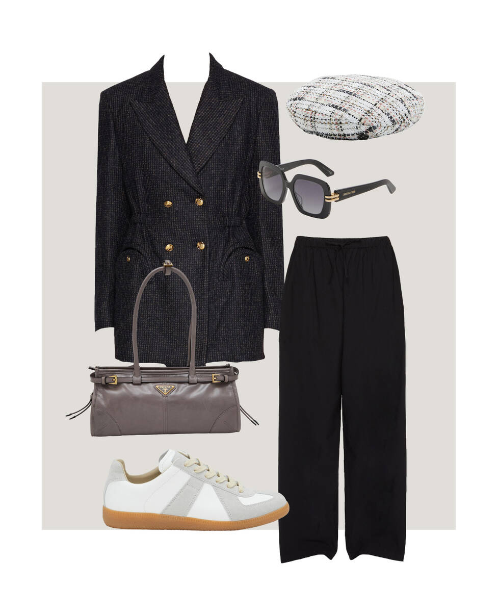 A fan of the grandpa-core aesthetic? Look no further than Wales Bonner’s latest ready-to-wear collection, fusing archival designs with elevated materials and vibrant patterns. Start off with an oversized classic brown khaki jacket and layer on a bold, colourful knit vest that’s sure to turn heads. Pair it with a pair of tailored dark trousers for an effortlessly polished vibe then top it off with a hat – because who doesn’t love a little flair? To really make the look your own, round off the look with the newest arrivals of Wales Bonner kicks in silver (one of the brand’s signature items), adding a striking modern touch to your ensemble.