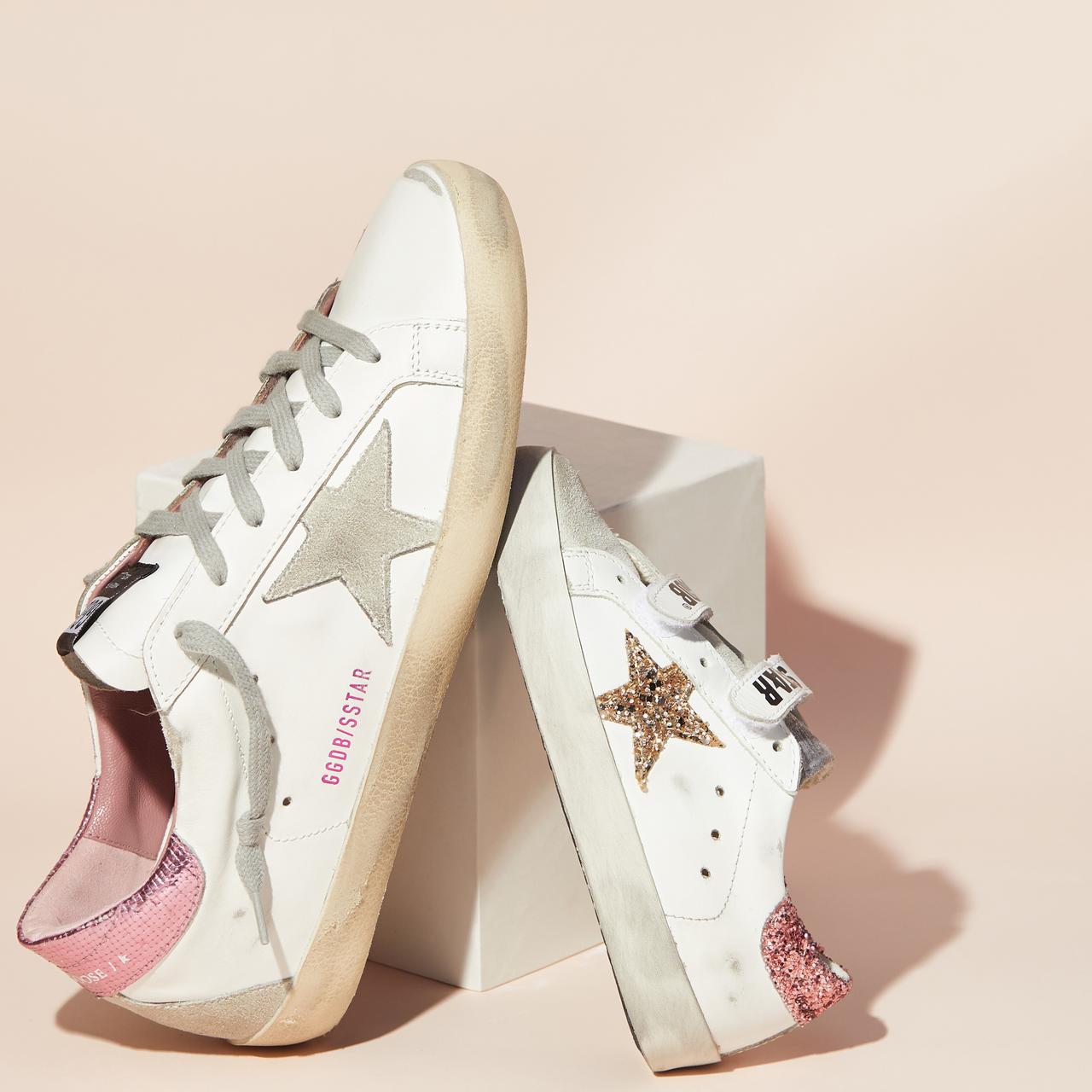 + GOLDEN GOOSE 'Super-Star' Laminated Heel Tab Distressed Leather Sneakers Shop Now + GOLDEN GOOSE 'Old School' Glitter Star Motif Distressed Toddler Leather Sneakers Shop Now Summer Sneakers Expand your summer sneaker collection with designs that boast versatility and style