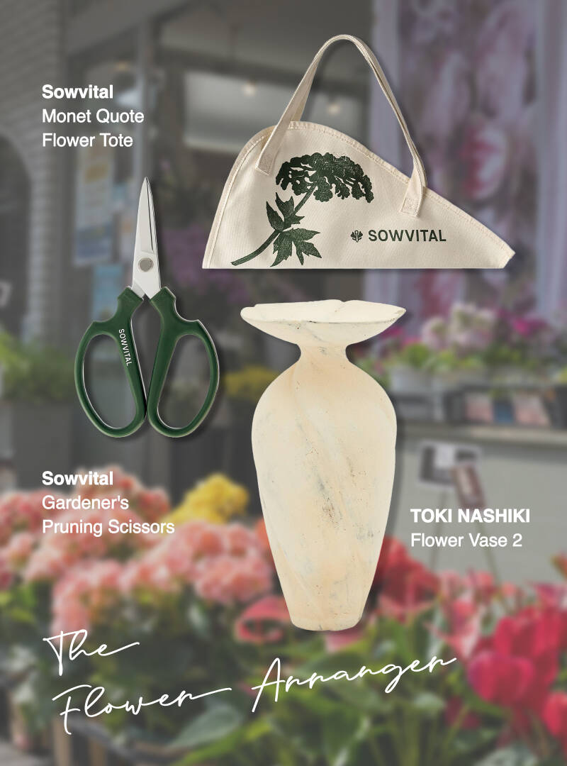 A carefully – planned garden takes patience and knowledge. Whether you’re aspiring to become a flower farmer or just grow a few windowsill blooms, here are a few tools that both inspire and are functional. If you need a gardening refresher or a few new tips, there’s Sowvital’s pruning scissors and flower tote. And if you just need a little upgrade, a chic flower vase from Toki Nashiki to hold your blooms is never a bad idea. Combine it with a charming picnic basket from Jardins de la Comtesse, and you’ll have everything you need for a delightful garden gathering with friends.
