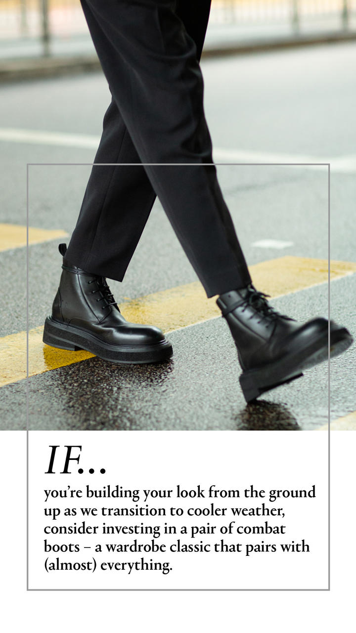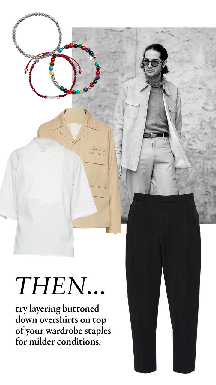 Transitional Dressing 101 We’re equipping you with an arsenal of clothing and accessories that lean themselves effortlessly to layering and mixing and matching. + MARSÈLL Zuccone' Leather Combat Boots Shop Now + RE: BY MAISON SANS TITRE Four Pocket Wool Jacket Shop Now + RE: BY MAISON SANS TITRE Wide Sleeved Polo Shirt Shop Now + RE: BY MAISON SANS TITRE Pleated Tappered Pants Shop Now + TATEOSSIAN Multi bead sterling silver thread elastic bracelet Shop Now + JACQUEMUS Le Bob Picchu Cotton Blend Bucket Hat Shop Now + LOEWE ANTON SLING' FOLD OVER LEATHER BUMBAG Shop Now + PRADA Nylon Pet Leash With Mini Pouch Shop Now + BOTTEGA VENETA Triangle buckle leather belt Shop Now + BYREDO Eleventh Hour Eau de Parfum 100ml Shop Now VIEW COLD CULTURE EDIT