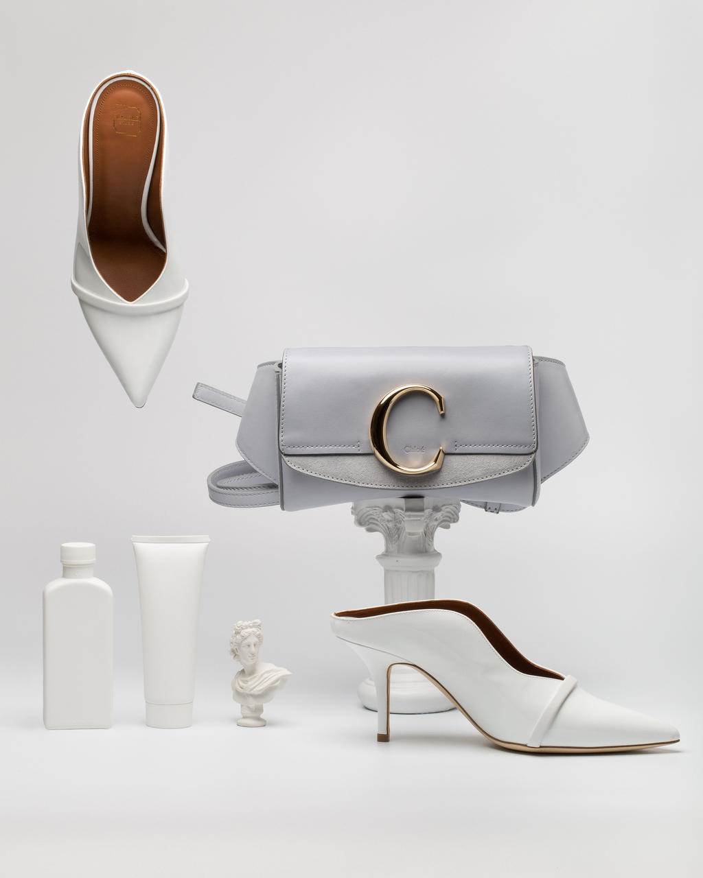 When it comes to outfit accents, the season’s biggest colour cue is clear: dunk it in milk and cream. Case in point: Malone Souliers’ signature sharp mules redrawn in whisked egg white and The Row’s serve of buttery-soft leather ankle boots in a beige reminiscent of cereal milk. Wandler, Chloé and STAUD all offer up fresh iterations of the white-hot handbag, while creamy eyewear, perched low on the nose, cements the mood.