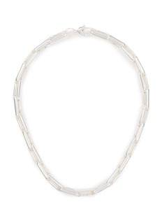 Embrace minimalist elegance with the Eliou Thasos Link Necklace, crafted from polished silver. This necklace features a sophisticated series of elongated links, offering a contemporary twist on the classic chain design. Lightweight yet striking, it's an ideal choice for layering or wearing as a standalone statement piece.
