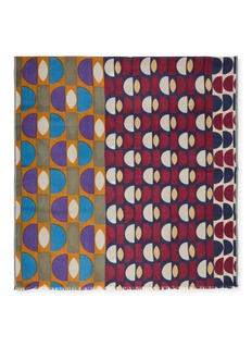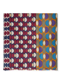 Step back in time with this vibrantly patterned ÉPICE scarf. Its retro-inspired design features bold teardrop shapes in a palette of deep blues, purples, and earthy tones, perfect for adding a pop of colour and vintage charm to any outfit.