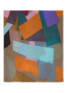 Experience the sophistication of geometric harmony with this ÉPICE scarf. Its rich tapestry of autumnal shades and sharp angular lines blend to create a visually stunning piece that complements any fall wardrobe.