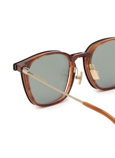 Reimagined in a warm amber tone, these rounded square sunglasses fuse acetate and stainless steel for a refined duality of texture. The clip-on lenses shift effortlessly between clear blue-blocking lenses for screen time and green nylon sun lenses for outdoor clarity. An elegant update to everyday eyewear.