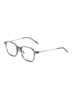 These sunglasses showcase a bold square silhouette softened by subtly rounded corners, crafted in acetate with stainless steel arms. Designed with clip-on versatility, they move from clear lenses to warm-toned nylon sun lenses for effortless indoor-to-outdoor wear. A. SOCIETY’s clean geometry makes them an elevated modern essential.