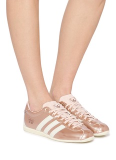 Adidas' classic low-top sneaker showcases timeless athletic style through its streamlined silhouette and iconic three-stripe detailing. The design features a lace-up closure, contrast stripes, vintage-inspired branding, tonal stitching accents, and a textured rubber sole. Retro sportswear elegance with enduring versatility.