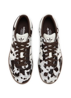 Elevate your sneaker game with adidas' iconic Samba sneakers, re-envisioned in an eye-catching cow print. Crafted from premium hair-on-hide leather and set on a gum rubber sole for enduring comfort, these sneakers are perfect for those who dare to stand out from the crowd while appreciating classic style.