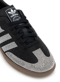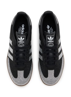 Step into sleek sophistication with the adidas Samba sneakers, featuring a textured black upper that exudes a refined yet sporty aesthetic. Accented with iconic white stripes, these sneakers offer a classic contrast, perfect for adding a touch of elegance to any casual look. The gum sole enhances the design with a vintage vibe while providing durable traction for everyday activities.