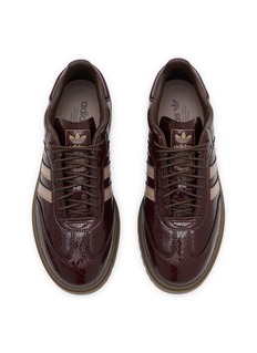 Discover the refined elegance of adidas with these sleek sneakers, crafted in a rich burgundy hue with a glossy patent leather finish. The contrasting stripes in muted tones add a touch of sophistication, while the rugged rubber outsole offers enhanced durability and grip. Ideal for those who value both style and comfort, these sneakers provide a smooth transition from a casual day out to an evening event.