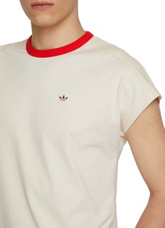 adidas X CLOT's crewneck T-shirt elevates everyday essentials with refined collaborative detailing. The contrast ribbed neckline and subtle embroidered Trefoil logo create understated brand synergy, while unique side trim adds unexpected visual intrigue. Classic relaxed fit meets contemporary streetwear sensibility in this collectible capsule piece.