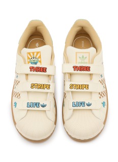Inspired by the worlds dreamed up by Disney Pixar, this pair features your little ones' familiar friends. Featuring hook-and-loop straps, these shoes are easy for little hands to put on and kick off. The smooth synthetic leather upper, textile lining and rubber outsole keep kids comfortable whether they're climbing jungle gyms or chasing their friends around the park.
