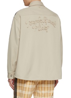 From the adidas X Song for the Mute collaboration, this shirt fuses streetwear heritage with avant-garde detailing. Adorned with mismatched buttons and tactile embroidery across the back, it redefines uniform codes with expressive craftsmanship. Ideal for pairing with tailored trousers or track pants for a subversive urban edge.