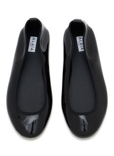 Step into elegance with these Alaïa ballet flats, a polished choice for any wardrobe. Expertly crafted from glossy patent leather, these shoes feature a sleek, streamlined silhouette that epitomizes minimalist chic. The fluid lines and refined design reflect Alaïa's commitment to craftsmanship and detail. Perfect for transitioning from day to night, these flats offer both supreme comfort and timeless style.