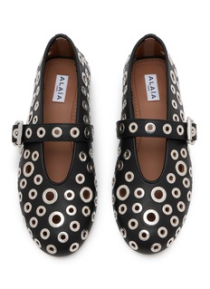 Discover the art of elegance with ALAÏA's premium leather flats, featuring an all-over eyelet embellished design and a buckled strap. These flats merge classic charm with contemporary aesthetics, ideal for the fashionably discerning.