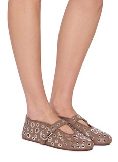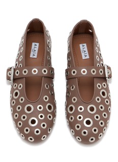Discover the art of elegance with ALAÏA's premium leather flats, featuring an all-over eyelet embellished design and a buckled strap. These flats merge classic charm with contemporary aesthetics, ideal for the fashionably discerning.