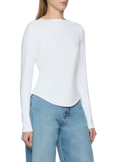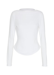 Alaïa infuses precision into a timeless silhouette with this long-sleeve top, refined through clean lines and a softly curved hem. The minimalist design subtly contours the body, creating a sleek foundation that pairs effortlessly with sculptural skirts or voluminous denim.