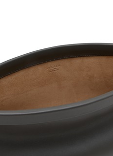 Alaïa presents pure sophistication with this architectural shoulder bag. The dove grey leather creates a canvas of refined simplicity, while gold-tone hardware adds considered luminosity. The sleek silhouette embraces modern minimalism.