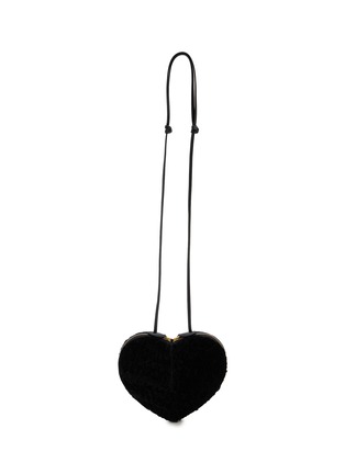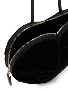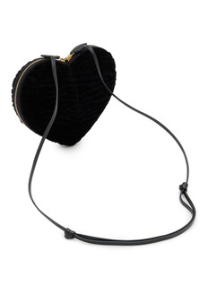 This Alaïa heart-shaped handbag is a truly unique accessory that combines playful design with luxury. Crafted from astrakan shearling, it features a sleek black leather strap that is adjustable for versatile styling. The compact shape is ideal for evening events or adding a statement touch to a daytime outfit.