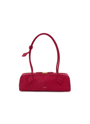 ALAÏA reimagines the classic shoulder bag with architectural precision. The supple nubuck leather creates a sophisticated finish with an elongated silhouette, whilst the curved handles add dramatic height. Gold-tone hardware and precise topstitching reflect the house's attention to detail.