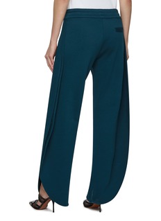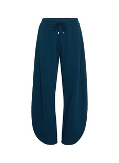 These blue fleece jogger pants reinterpret loungewear with a sculptural twist, featuring fluid petal-shaped slits that open along the leg for a sense of movement. The low-rise silhouette and elongated drape create a modern, relaxed line, complemented by clean pocket detailing for a refined off-duty look.