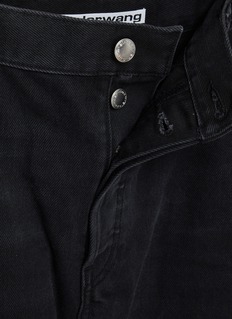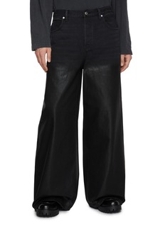Crafted by alexanderwang with a bold downtown sensibility, these wide-leg jeans feature a dark wash contrasted by a sleek half-coated finish. The exaggerated silhouette adds sculptural movement, elevating everyday styling with contemporary edge.