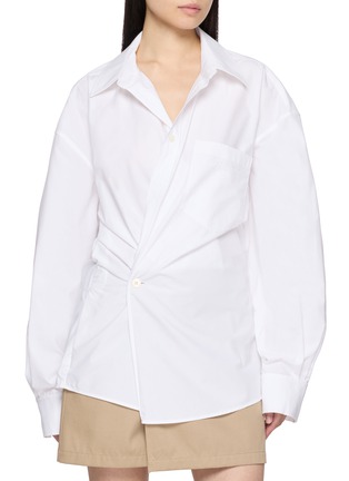 A study in effortless subversion, this pre-styled wrap mini dress from alexanderwang plays with shirting codes through an artfully twisted front. Cut from crisp cotton twill, it delivers a polished yet undone attitude—ideal with bare legs and boots or layered over tailoring.