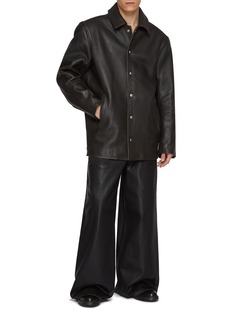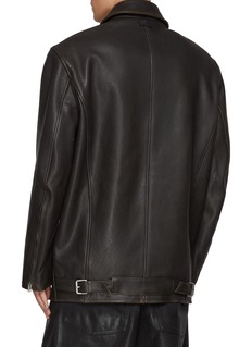 alexanderwang redefines modern luxury with pieces that combine cutting-edge fashion with a distinctly downtown sensibility. Cut into an oversized silhouette and detailed with a strap at the back, this moto jacket channels an effortless allure.