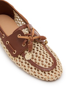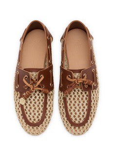Named after the Greek word for boat, Pliaria takes the traditional preppy style and gives it a laid-back feel. Handmade in Greece to a typical boat-shoe shape, the style is given a twist with distinctive leather laces rolled to form a special knot, and finished with gold charms hanging from the laces. This version taps the trend for raffia, combining it with smooth Vachetta leather and evoking memories of summer days.