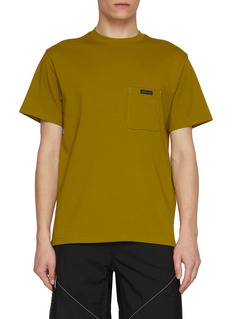 AND WANDER's technical T-shirt features mixed-texture paneling with a zip chest pocket and reflective trim. The oversized silhouette showcases contrast sleeves and a curved hemline for contemporary utilitarian style. A performance-driven essential that bridges outdoor functionality and urban sophistication.