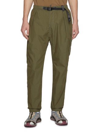 AND WANDER x GRAMICCI trousers in olive feature an elasticated waist with integrated webbing belt, contrast topstitching, and side zip pockets. The relaxed tapered fit combines lightweight ripstop fabric with quick-dry technology for superior comfort. A versatile technical pant that transitions seamlessly from trail to city.