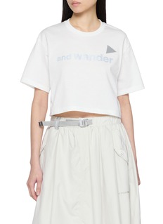AND WANDER - Reflective Logo Crewneck Cropped T-Shirt