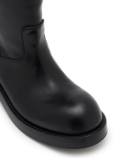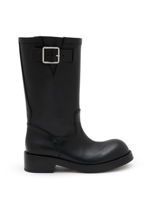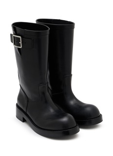 Ann Demeulemeester's mid-calf biker boots showcase oversized buckle detailing and clean-lined silhouette for understated rebellion. The pull-on design features rounded toe and low stacked heel for comfortable all-day wear. A timeless footwear essential that embodies the brand's signature minimalist rock aesthetic.