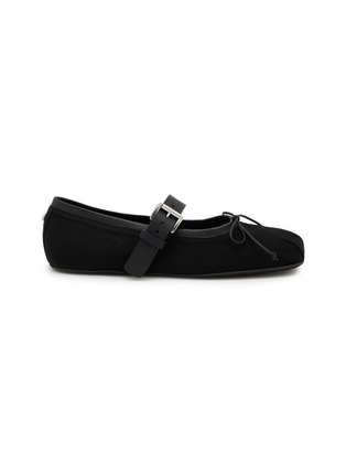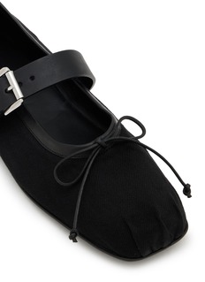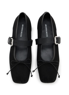 Embrace understated elegance with these Ann Demeulemeester ballet flats, crafted from luxurious black cotton denim. The design features a contemporary twist with a bold strap and buckle across the top, complemented by delicate lacing. These flats not only offer a sophisticated aesthetic but also ensure comfort and versatility, making them perfect for both day-to-day wear and special occasions.