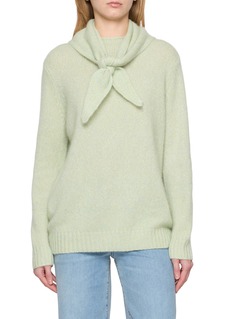 This Arch4 sweater exudes timeless sophistication with a playful twist. Crafted from luxurious cashmere, the piece feels exceptionally soft against the skin. Its delicate mint green hue adds a fresh, serene touch to your wardrobe, perfect for elevating any ensemble. The unique feature of this sweater is the adjustable tie at the neck, which can be styled into a bow for a charming and personalized look. Ribbed cuffs and hem ensure a snug fit, making this sweater not only a stylish choice but also a practical one for cooler days.