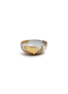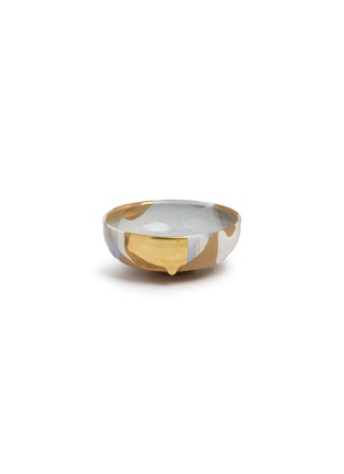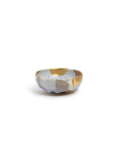 This exquisite tea bowl, with its blend of soft pastels and metallic gold accents, offers a truly unique aesthetic for your tea experience. The delicate interplay of sky blue and creamy beige hues is gracefully complemented by bold gold splashes, presenting an elegant yet contemporary art piece.