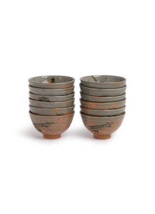 Discover the charm and individuality of this set of tea bowls, each piece handcrafted to bring a unique touch to your tea ceremonies. The bowls are adorned with artistic illustrations of nature and abstract designs, rendered in soft earthy tones with subtle accents of orange and grey, ideal for those who appreciate variety and artistic expression in their tea ware.