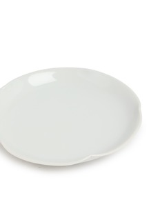 Savour every bite with this elegantly simple plate. Its pristine white hue offers a touch of refined serenity to your dining experience. A delicate flower-shaped rim adds a subtle luxury to the design, making it a distinguished piece in your collection.
