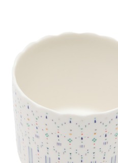Nozomi Nozomi redefines traditional Goryeo inlay techniques, embedding vibrant pigments into fine grooves and carving the surface to reveal intricate patterns. Dots and lines feature on smooth, fine-grained porcelain clay, creating a mesmerising, textured canvas.