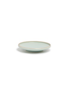 Savour every bite with this elegantly simple plate. Its soothing pastel green hue offers a touch of refined serenity to your dining experience. A delicate contrast rim adds a subtle luxury to the design, making it a distinguished piece in your collection.